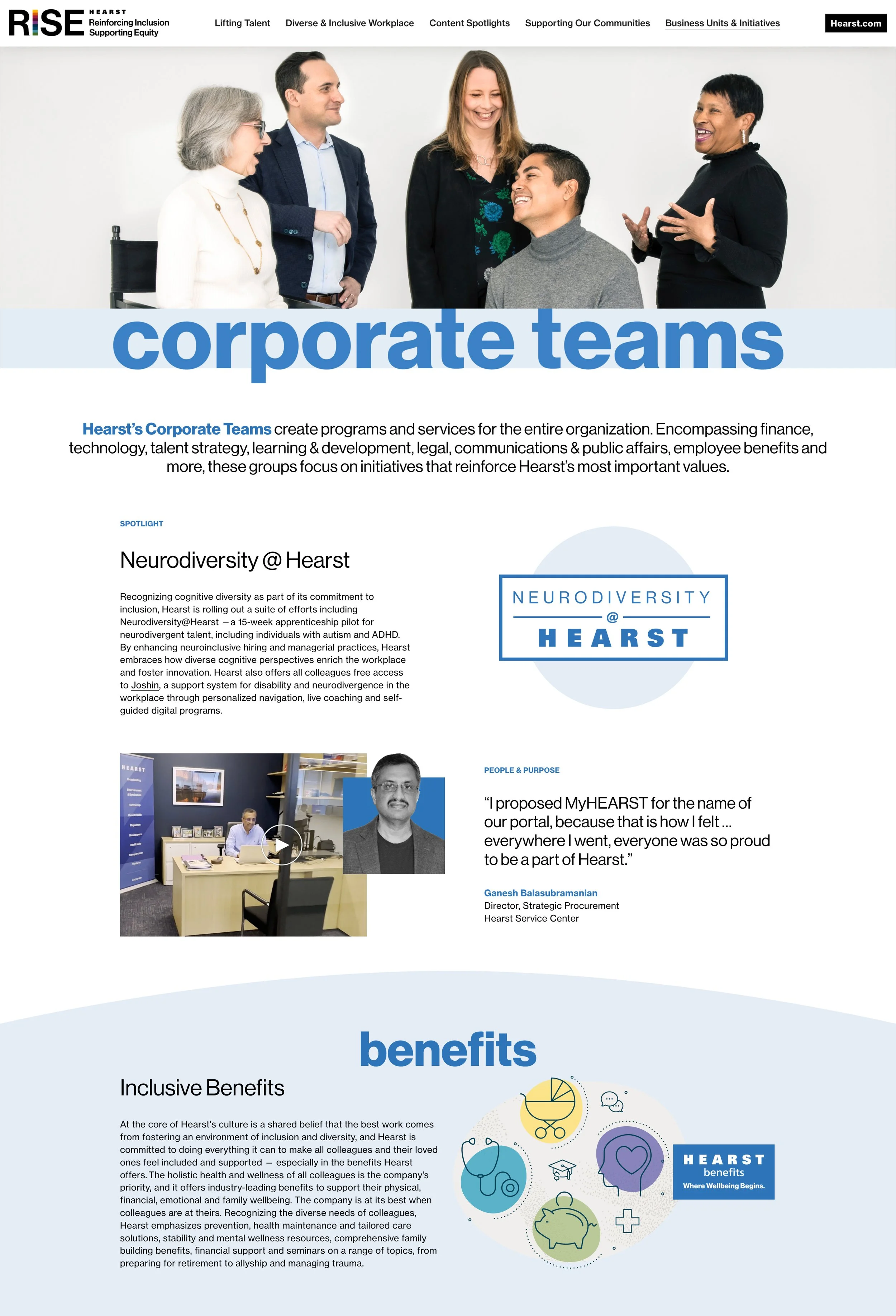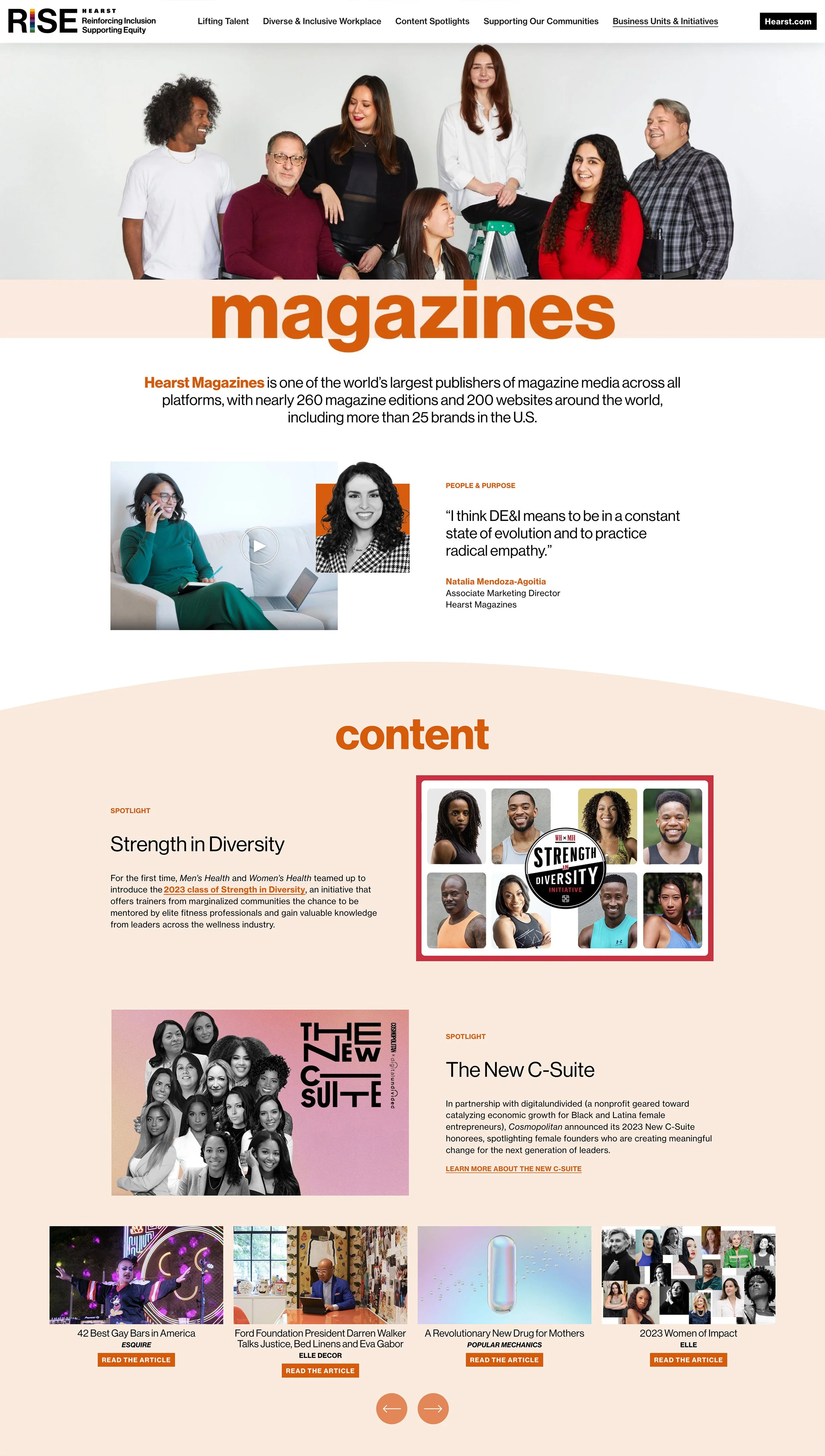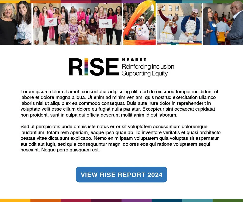 Hearst RISE (Reinforcing Inclusion, Supporting Equity) is Hearst’s commitment to its colleagues and customers to create an inclusive culture. The Hearst RISE Report is a live website and also includes a PDF version of the report, highlighting the main themes of that year. The website hosts original videos, telling the stories of Hearst’s employees and programs geared to diversity. The marketing for the initiative includes an internal e-blast to employees, Instagram and LinkedIn campaigns and a digital billboard. I created the branding for this project, as well as design and build the website, PDF version and all promotional materials.