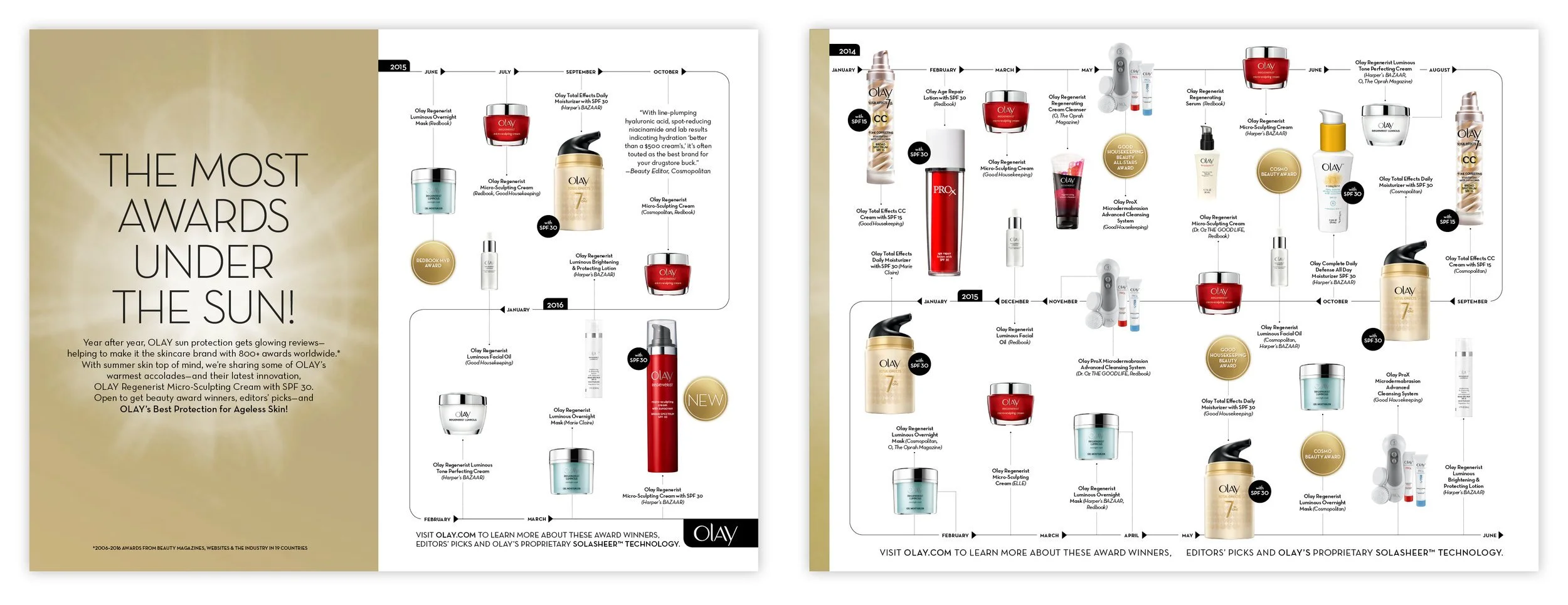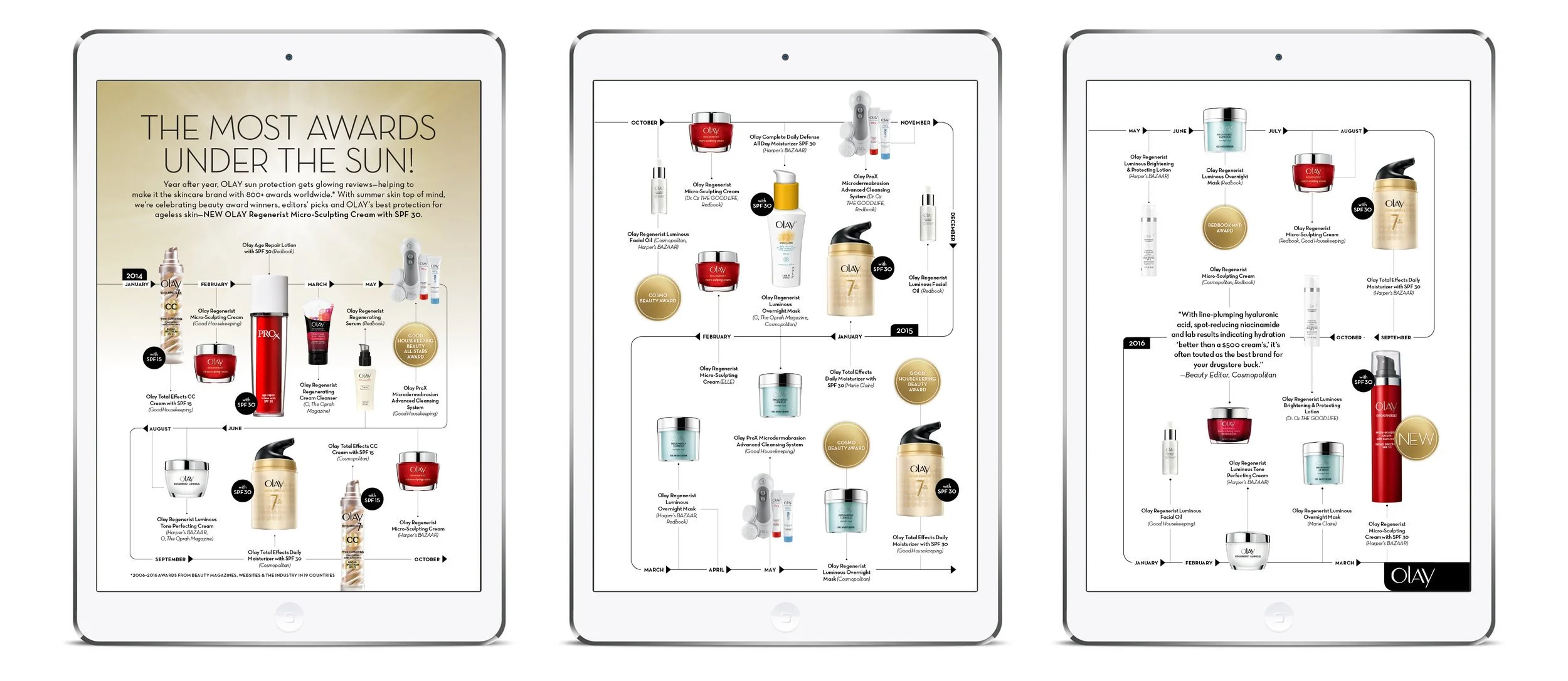 Native advertising created for Olay, featured in ELLE magazine. This included the print magazine and digital version, as well as an animated version for an outdoor digital billboard.